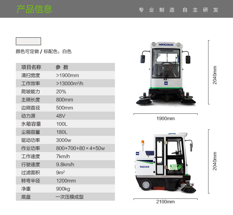 | 1 | 清扫宽度 | mm | ≥1900 |