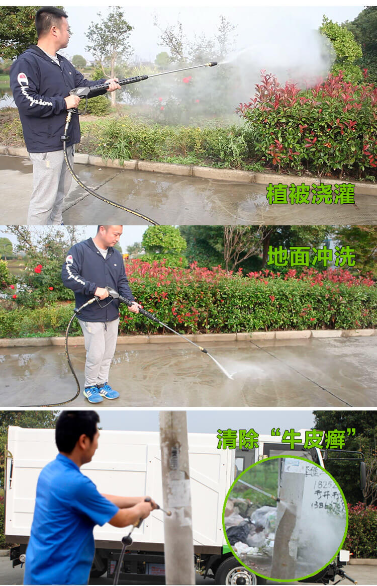 l 后置手动高压喷枪,高端15米长卷盘管配套高压水枪,操作方便简易且省时省力,作业范围大,轻松清理集中污渍和街边小广告。